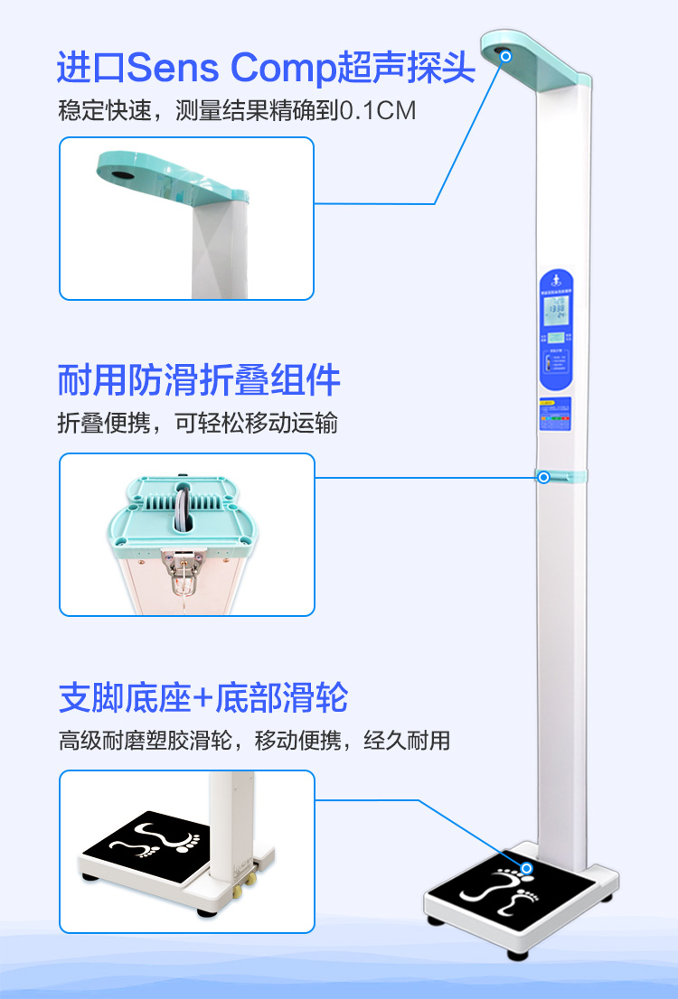 上禾SH-201智能雙屏身高體重測量儀,適合90%以上的春季體檢使用場景,雙屏顯示、可折疊、可設(shè)置您的專屬宣傳語、全自動測量、語音播報、數(shù)據(jù)傳輸?shù)龋胍墓δ埽加校?/p>